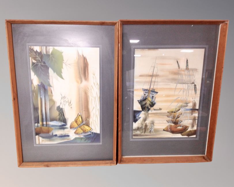R. W. I. Robertson (20th century) : Boulmer Sound, watercolour and gouache, 53cm by 38cm, together with the companion piece entitled High Force, dated 1974. (2)