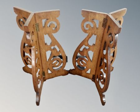 A pair of Victorian oak tripod coffin stands.