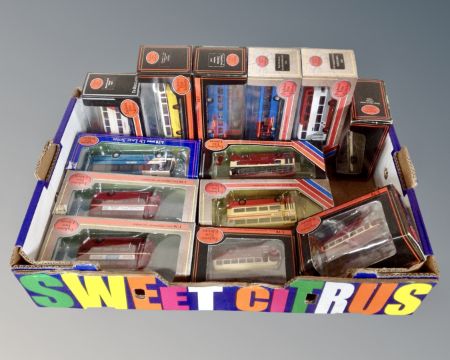 A collection of die cast Exclusive First Edition busses
