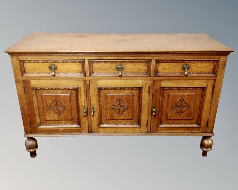 An Edwardian oak triple door sideboard.
