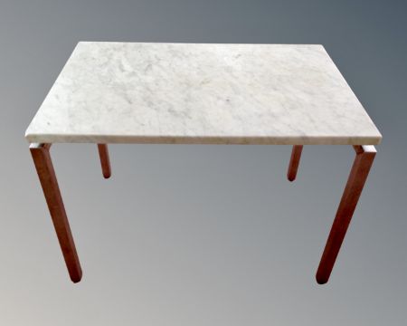 A 20th century white marble topped coffee table on chrome legs
