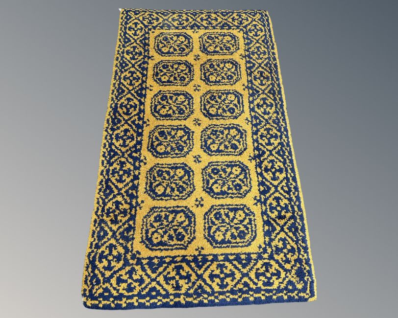 An Afghan design woolen rug on yellow ground, 163 cm x 95 cm