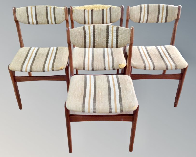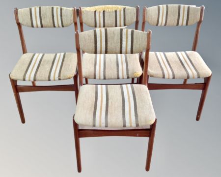 Four mid 20th century teak dining chairs (for reupholstery)