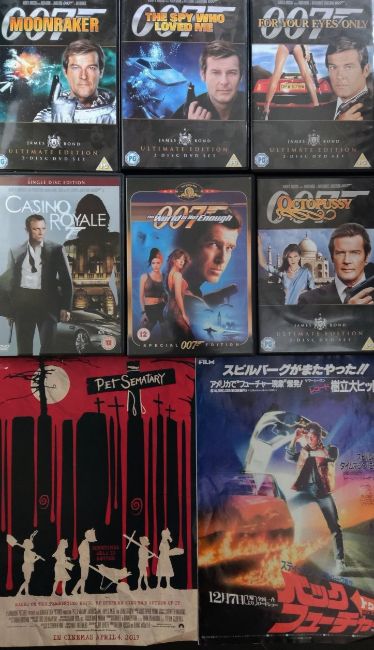 James Bond - Tomorrow Never Dies poster, flyers for Back to the Future, Pet Sematary and James Bond DVD's.