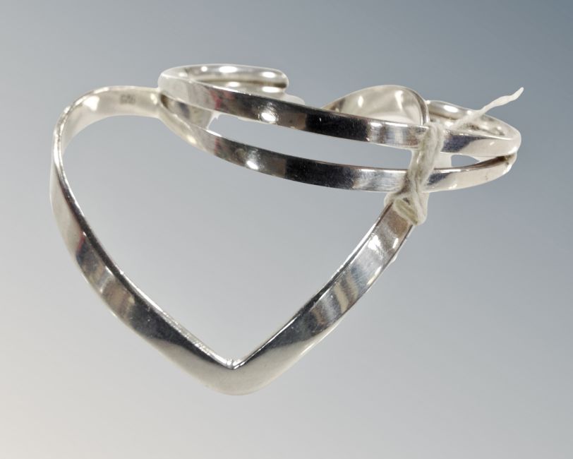 A 925 silver chevron torque bracelet together with a split double 925 silver bracelet