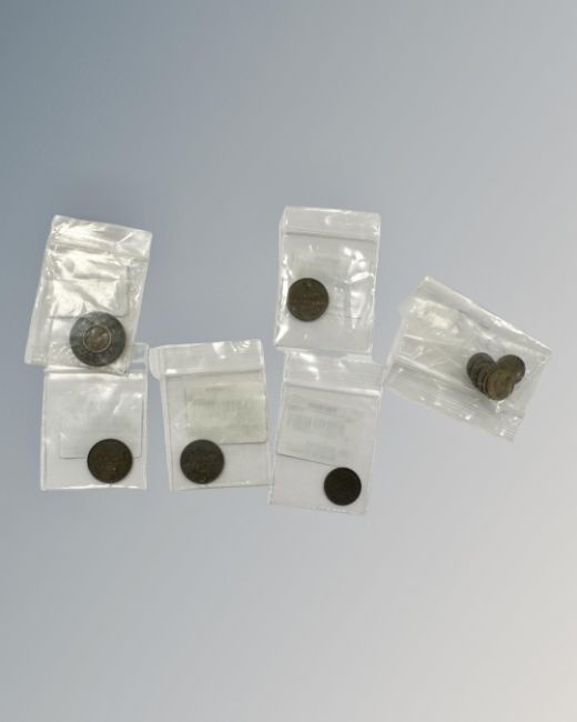 A nice Victorian model penny token, 1844 half farthing (3), 1866 third farthing plus six Victorian miniature coins