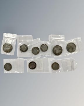 Victorian shillings 1877, 1881, 1875, 1886, 1874, 1898, Gothic florins 1879, 1875, 1877.