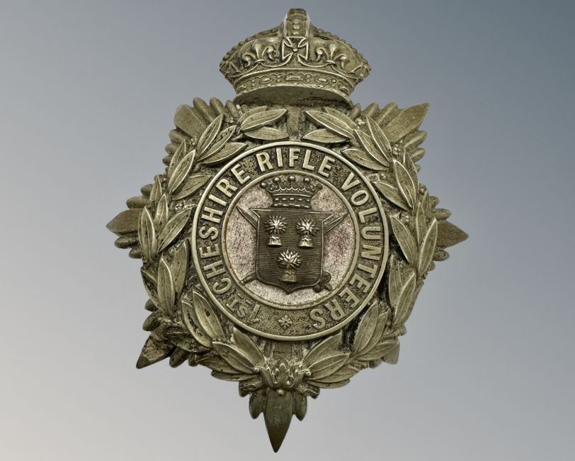 A Victorian helmet plate the 1st Cheshire Rifle Volunteers