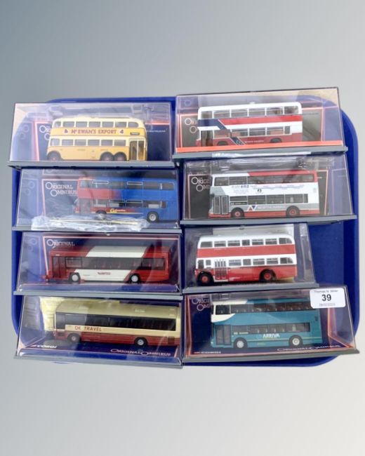 A collection of eight die cast models in original boxes, all busses, by Bus Operators in Britain, Original Omnibus Company, etc. (8)