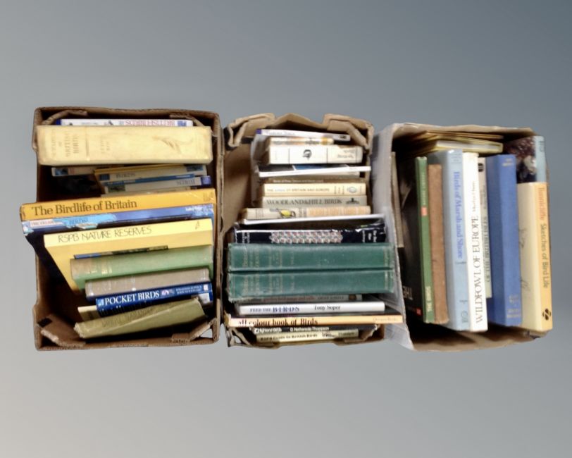 Three boxes of books relating to ornithology.