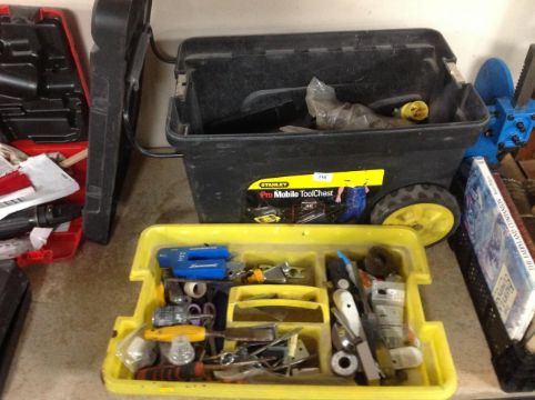 A Stanley Pro mobile tool chest with contents.