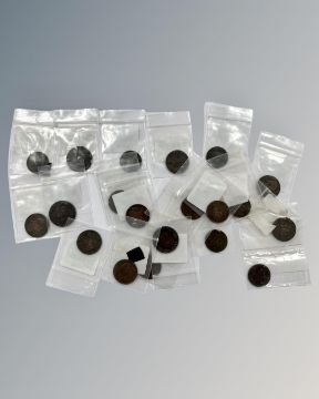 Georgian and Victorian farthings 1735, 2799 (2), 1821, 1834, 135, 1837 (2), 1838 (2), 1840, 1847, 1855, 1860 (2), 1872, 1874, 1875, 1885, 1897. (20)