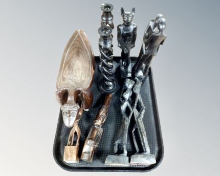 A tray of African carvings, figures etc.