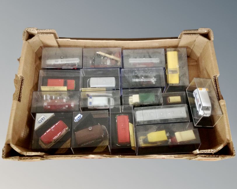 A collection of die cast model vehicles : Ringtons delivery van, fire engine etc