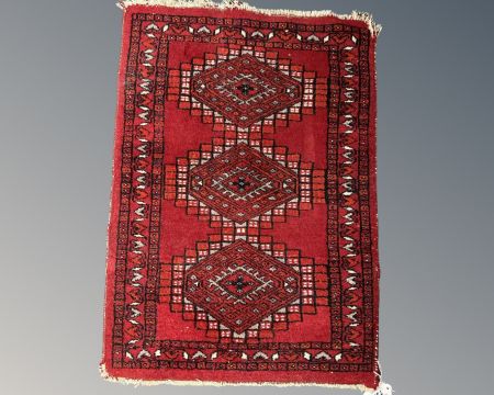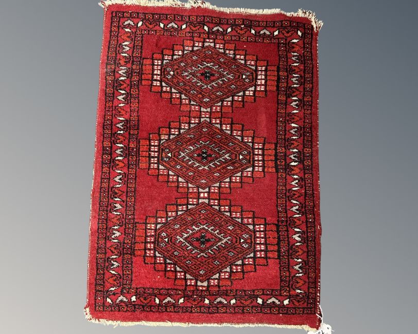 A small Afghan hearth rug 66 cm x 46 cm
