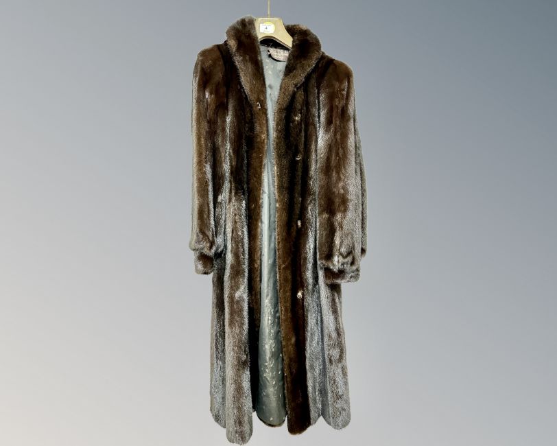A lady's three-quarter length brown mink fur coat, labelled R Danzig & Sons, London.
