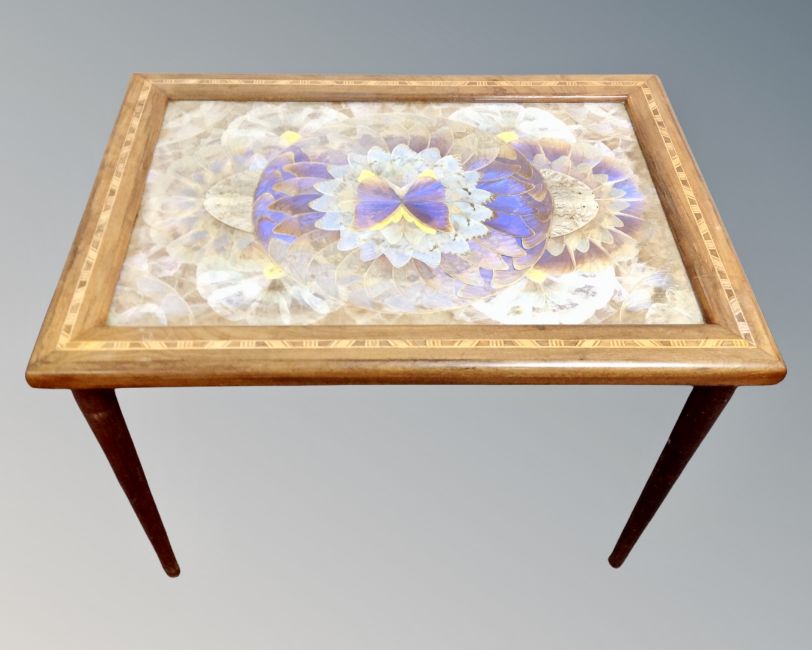 A satinwood inlaid butterfly wing table. (width 70cm)