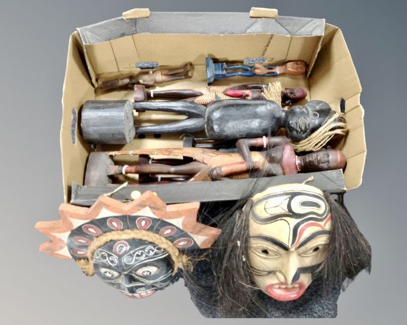 A quantity of African figures, wall mask and tribal carvings etc