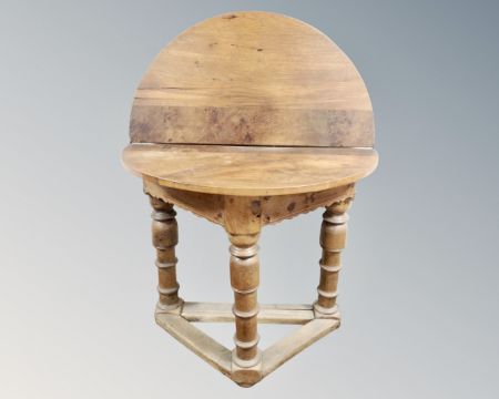 A 19th century oak demi-lune turn over top table