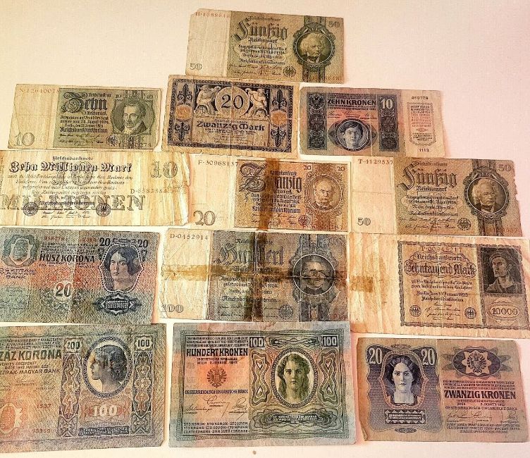 Vintage German and Austrian/Hungarian bank notes.