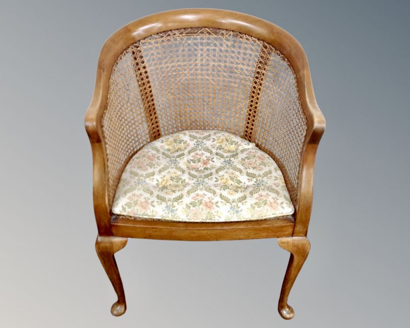 An Edwardian beech framed bergere tub chair