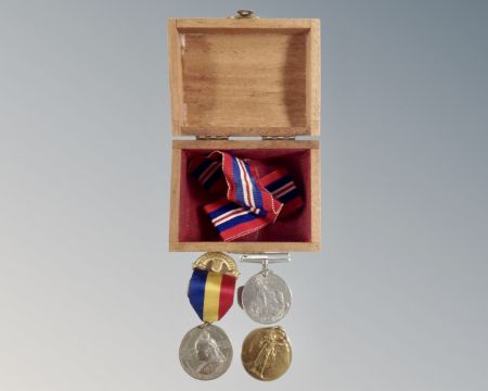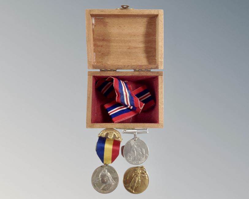 A Queen Victoria 60 years medal with ribbon, 1914-1918 campaign medal and 39-45 campaign medal