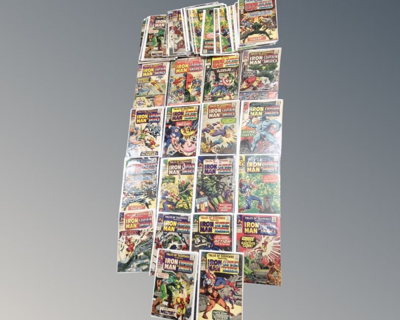 Forty-eight 20th century Marvel comics : Tales of Suspense featuring Iron Man and Captain America issues 64, 66, 69, 70, 74, 75, 76, 77, 78, 80, 81, 82, 83, 85, 86, 87, 88, 89 including multiples of some issues. (48)