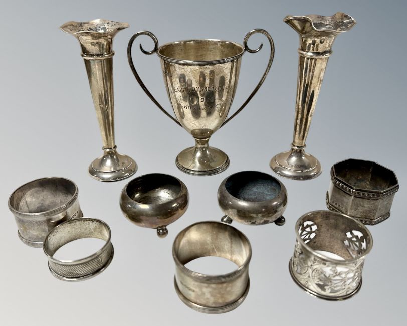 Weighable silver 398g gross. One bud vase has a weighted base and cannot be weighed accurately.