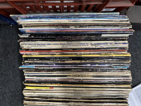 A box of vinyl records, Dire Straits, Ozzy Osbourne, Jethro Tull, Nazareth etc