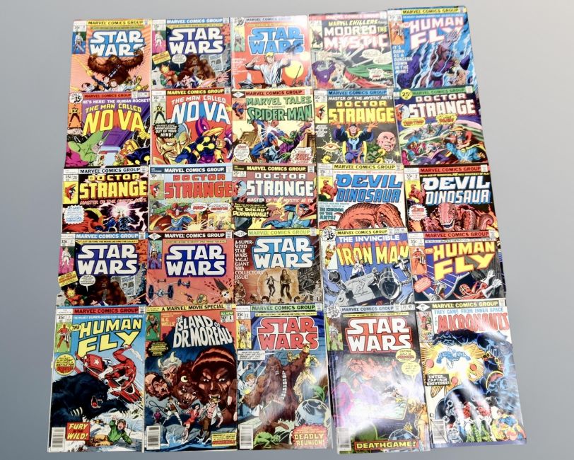 Fifty assorted 1970's and later Marvel comics to include The Island of Dr Moreau issue 1, Star Wars, Doctor Strange, Iron Man, Captain America, Spider-Man etc (50)