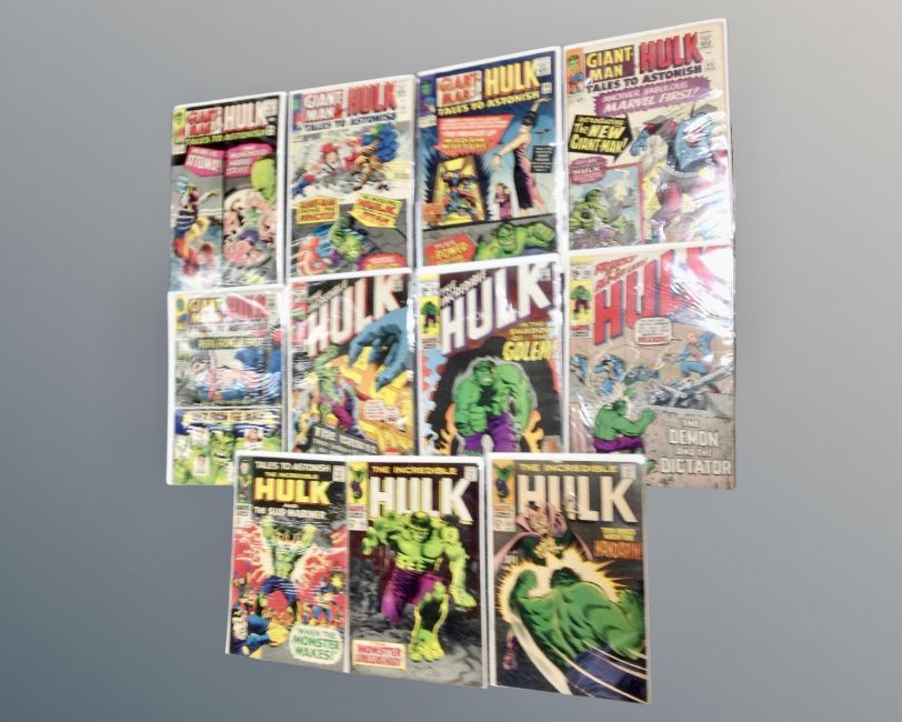 20th century Marvel Comics The Incredible Hulk issues 99, 105, 107, 133, 134, 140 and Giant Man and the Incredible Hulk, Tales to Astonish 63, 64, 65, 66 and 68, Hulk and the Sub-Mariner Tales to Astonish 18 issues including multiples of some issues. (29)