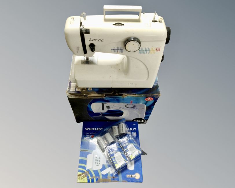 An Lervia sewing machine, boxed together with a wireless home alarm kit