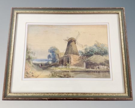 Harry Sticks (20th century) : A couple walking past a windmill towards the sea, watercolour, 30 cm x 20 cm, signed