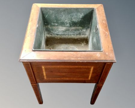 An Edwardian inlaid mahogany planter with metal liner