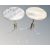 Three Scandinavian light fittings and two small occasional tables