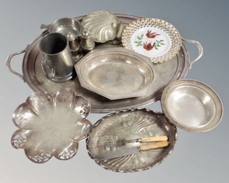 A collection of silver plated items, large tray etc