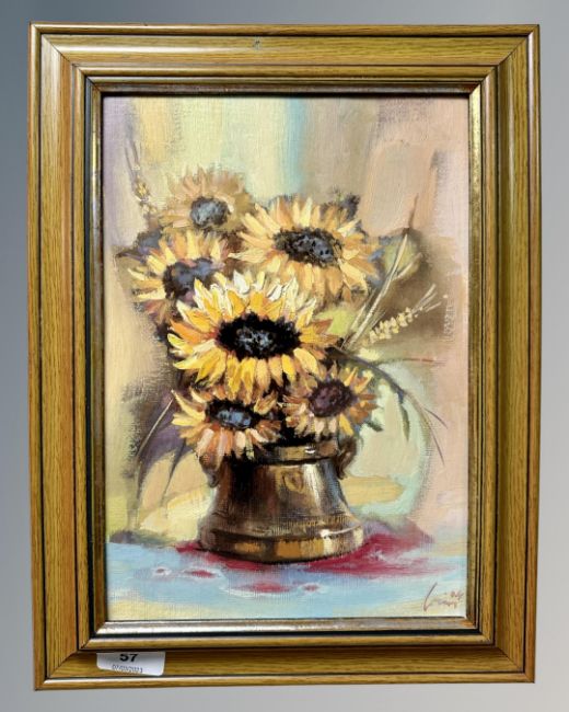 Continental school : still life with sunflowers, oil on canvas, 20 cm x 29 cm