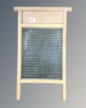 A vintage pine and glass wash board