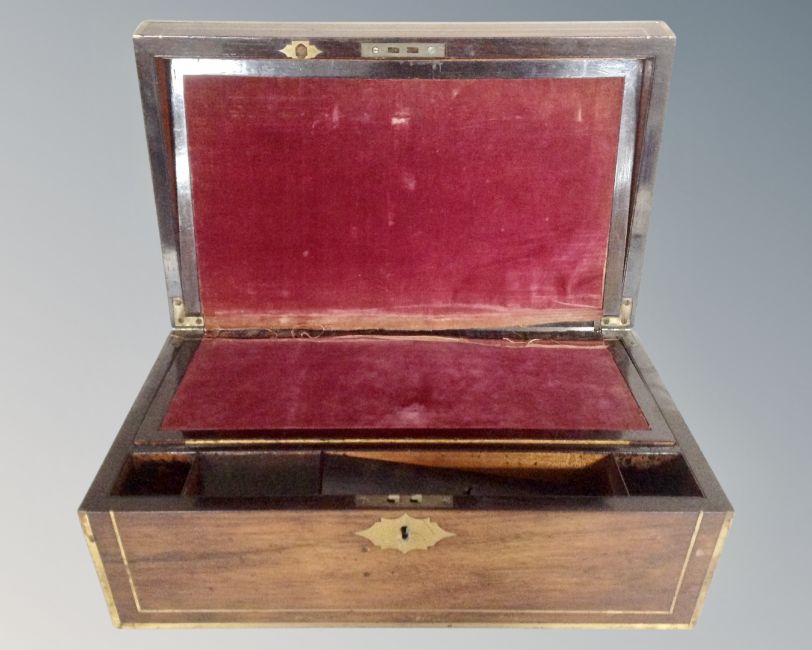A 19th century mahogany brass bound writing box.