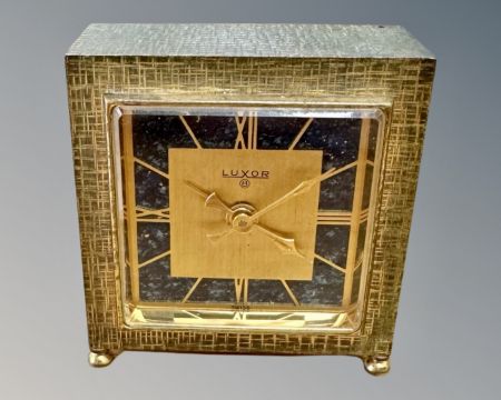 A Luxor alarm bedside clock in textured brass case, height 6.5cm