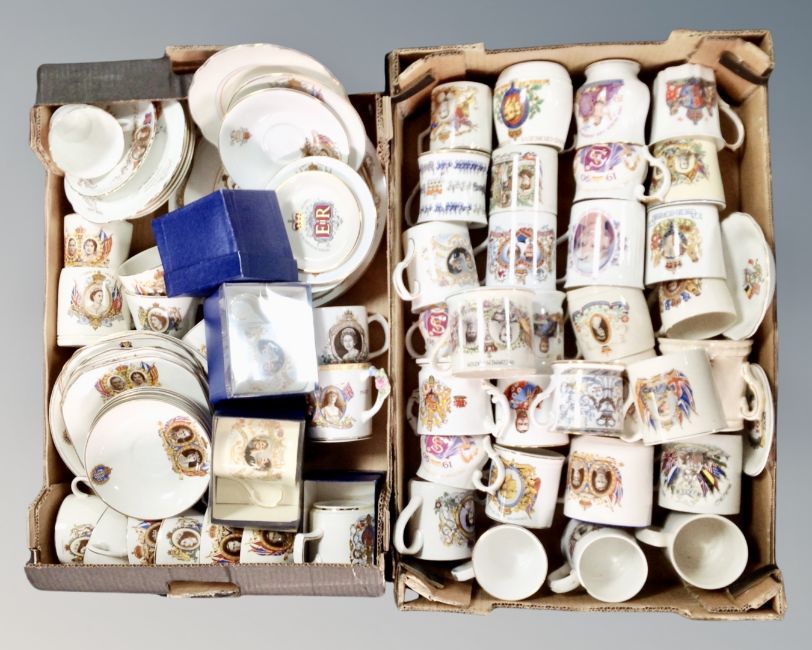 Two large boxes of commemorative china.