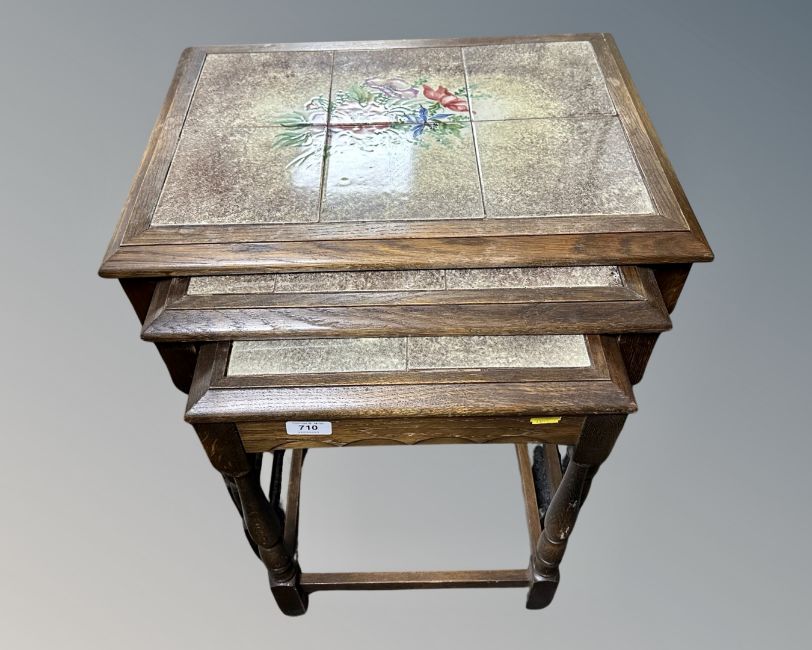 A nest of three oak tables. (width 54cm)