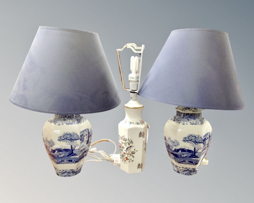 A pair of Spode Italian table lamps with shades, together with a further Aynsley Pembroke table lamp.