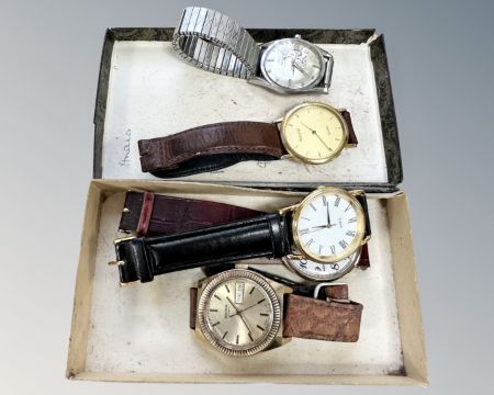 A box of five gent's wristwatches, Sekonda, Accurist etc