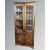 A pair of double leaded glass door corner cabinets fitted with cupboards below, in an oak finish.