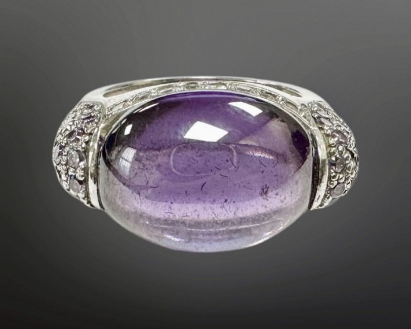 A silver cabochon amethyst dress ring, size K.
