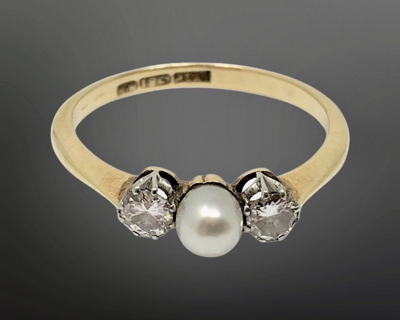 An 18ct gold pearl and diamond ring, size P.