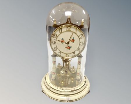 A 20th century German Kundo anniversary clock under glass shade