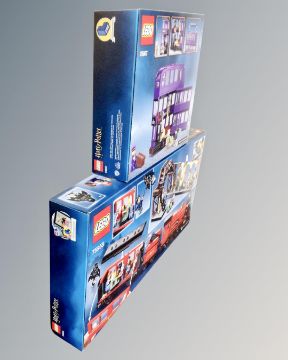 Lego : 75955 Harry Potter Hogwarts Express, together with Lego : 75957 Harry Potter The Knight Bus, both boxed, sealed, as new.