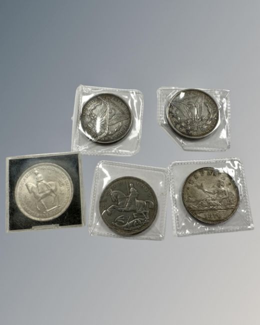Crown size coins including two 1880 US dollars and a 1935 crown